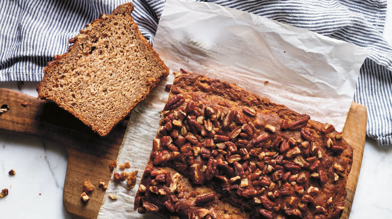 Transfer the batter to the prepared pan, top with the nuts, if using, and bake until the bread is lightly browned and a toothpick inserted into the center comes out clean, 55 to 60 minutes. Let cool in the pan for 15 minutes, then use the parchment overhang to remove the bread from the pan. Cut into 10 slices and serve.