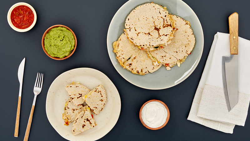 Place a second tortilla on top of the ingredients and cover with another sheet of parchment paper.