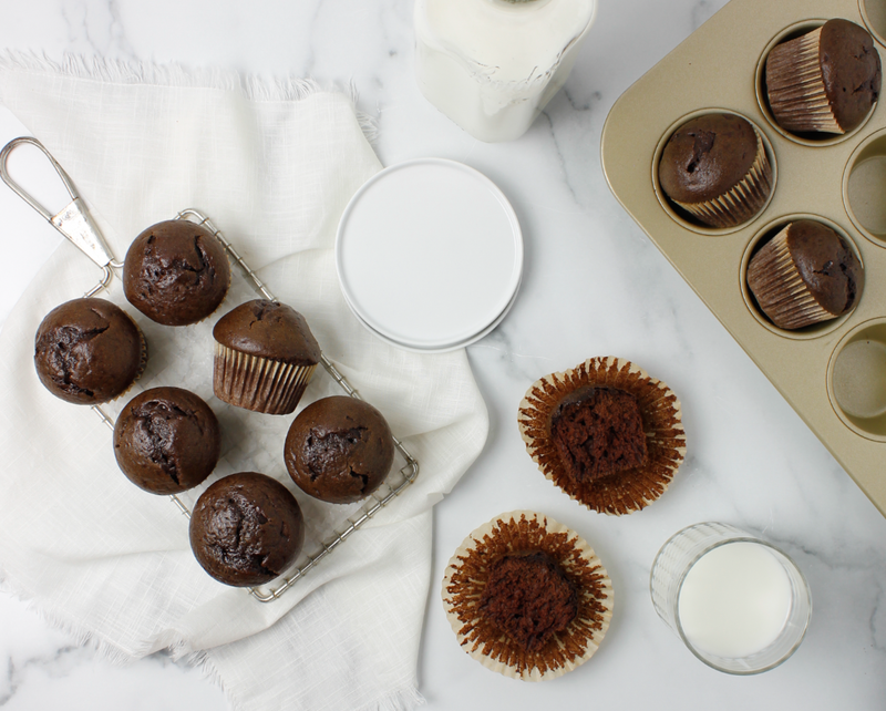 Pour Lulubelle mix and ingredients into a bowl. Blend with an electric mixer on medium for 3 minutes. Add chocolate chips or nuts as desired. Pour batter into muffin cups.