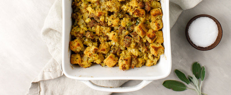 Preheat oven to 350℉ (180℃). Line a baking sheet with parchment paper. Cut the cornbread into ½ inch cubes and place them onto the baking sheet. Spray the tops of the cornbread with cooking spray or drizzle with olive oil. Bake for 15 to 20 minutes.