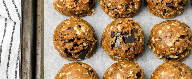 In another medium-sized bowl, add the softened coconut oil and brown sugar. Using an electric hand mixer, mix on medium-high speed until light and fluffy, about 1 to 2 minutes. Add peanut butter, vanilla extract, and maple syrup and mix until combined. Then add the egg, egg yolk, and espresso powder and mix until smooth and creamy.