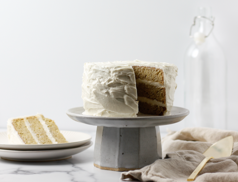 Bake cake for 25-30 minutes or until a toothpick inserted in the centre comes out clean. Allow to cool for 10 minutes before removing from the pan.