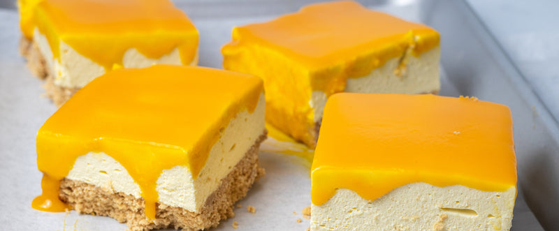 Cover the pan and place in the fridge for 6 hours, or until cheesecake has fully set. Once set, remove the cheesecake from the pan. Use a warm, sharp knife (run in under hot water and dry it off) and cut into squares.