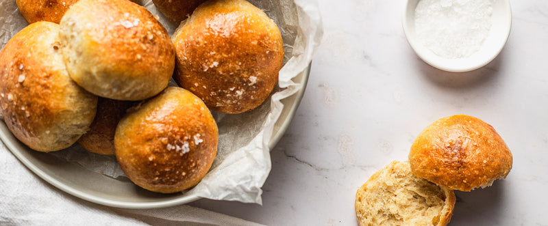 When the rolls have risen, brush with olive oil and sprinkle with flaky sea salt, if desired. Bake for 30-40 minutes, until the tops are golden brown and the internal temperature reaches at least 190°F.