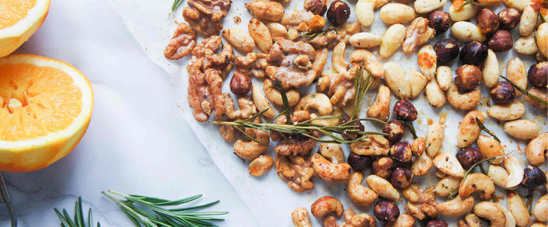 Pull the leaves off a few of the rosemary sprigs and combine in a large bowl with the mixed nuts and orange zest.