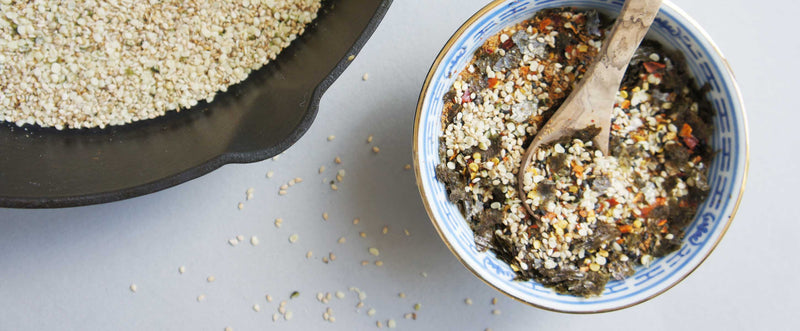 Once cooled add the nori flakes and the sesame seeds to the other ingredients and stir to combine. Store in an airtight jar for future recipes.