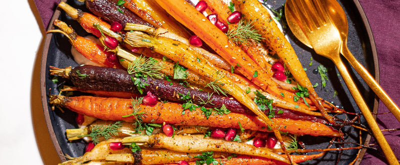 2 pounds rainbow carrots, scrubbed and cut in half