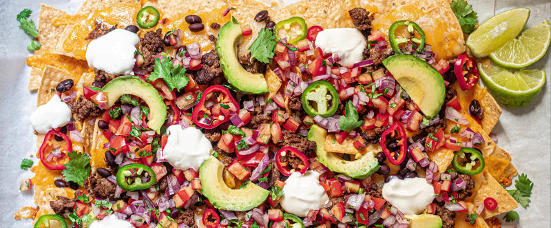 Spread tortilla chips across a parchment lined sheet tray in a single layer. Sprinkle with beef mixture, black beans and cheese. Bake until cheese is melted, 5-7 minutes.