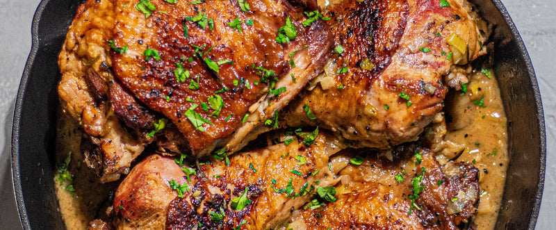Place your skillet or Dutch oven in the oven and braise until the turkey is tender and cooked through, about 2 hours.