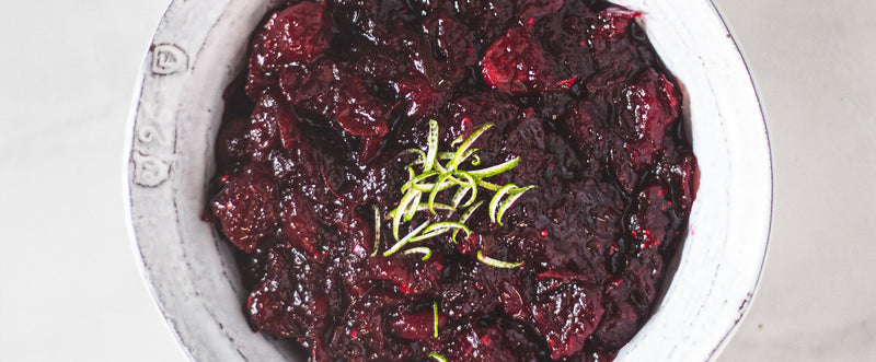 Add cranberries, agave, lime zest, lime juice, salt and Serrano chili to a large Dutch oven over medium high heat. Bring to a boil, constantly stirring. Adjust heat periodically to prevent scorching.
